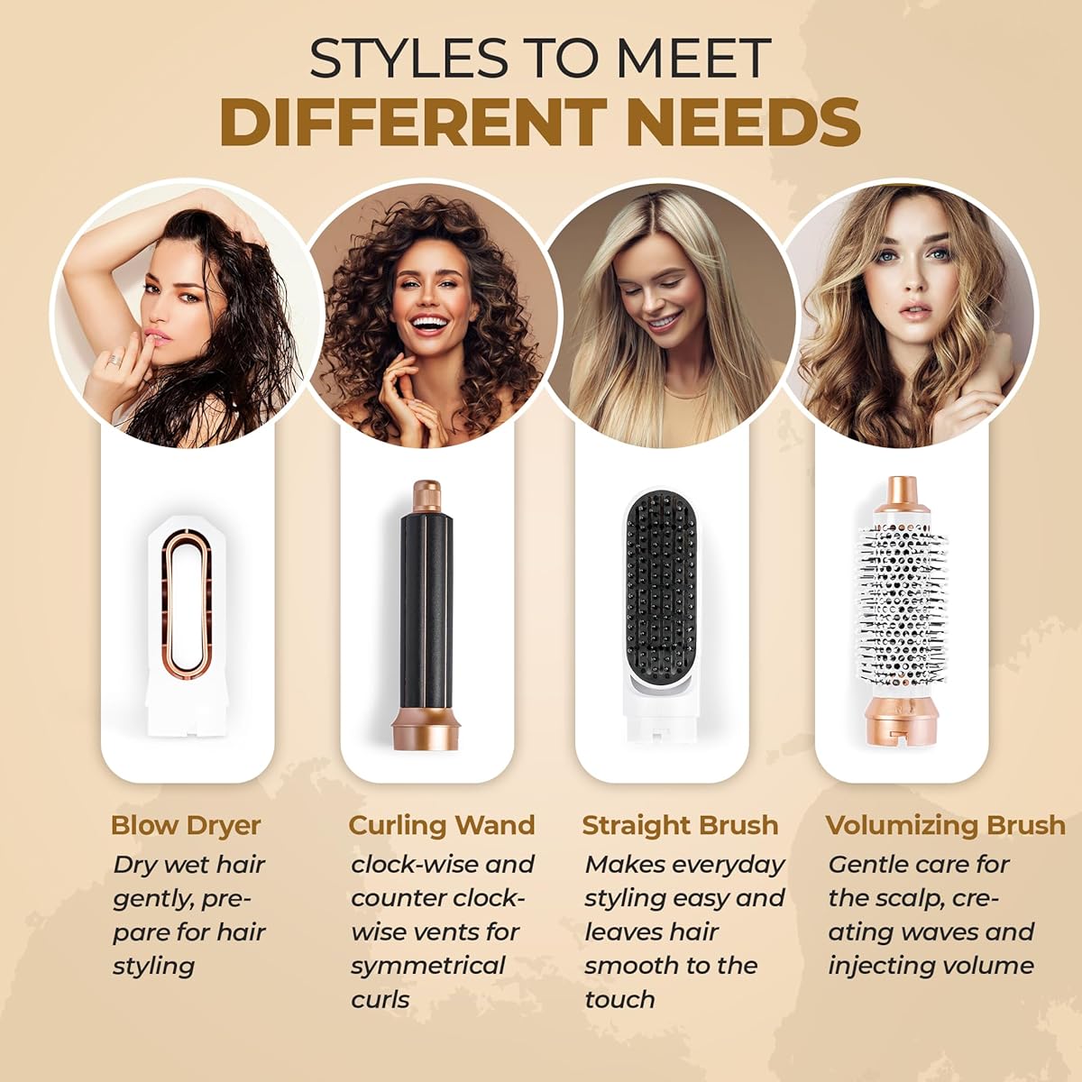 Each attachment is designed for a specific styling need — from drying and straightening to curling and volumizing. Simply choose the right attachment, select your preferred heat/speed setting, and style on damp or dry hair. We also include a quick-start guide with every order to help you get salon-quality results at home.